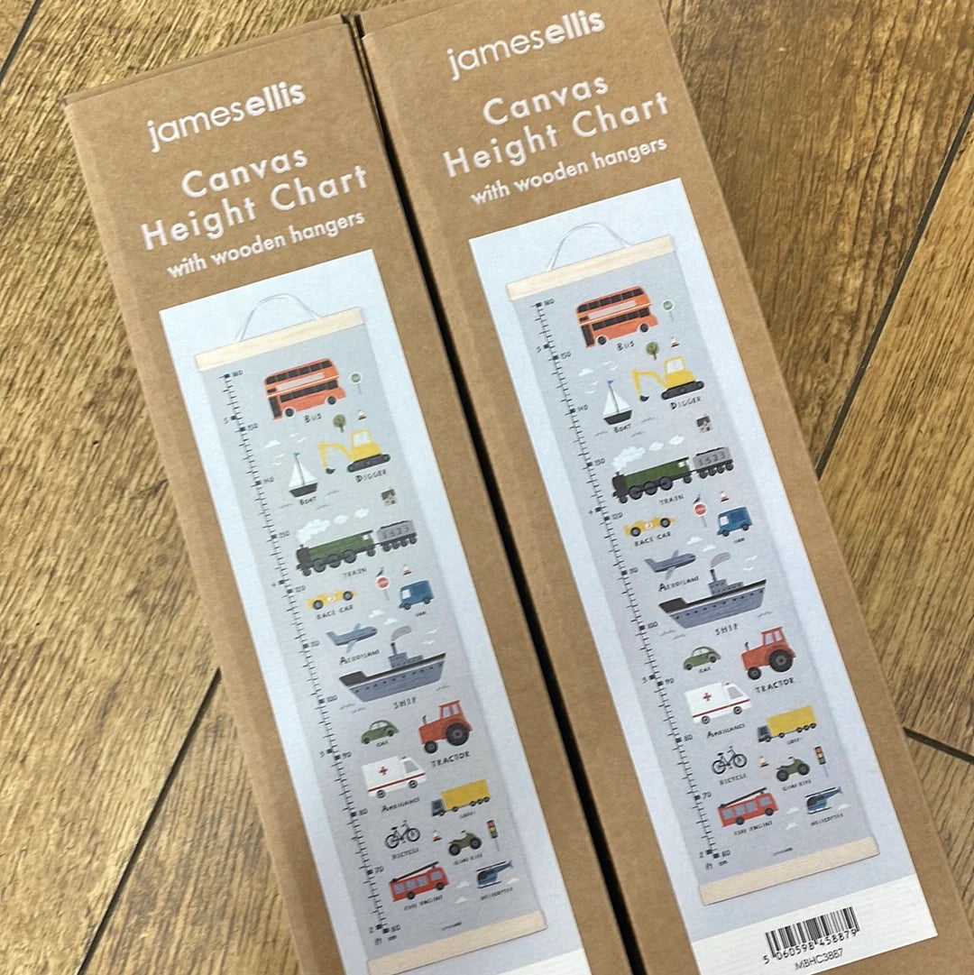 A fun transport themed height chart, illustrated by Linda Tordoff.